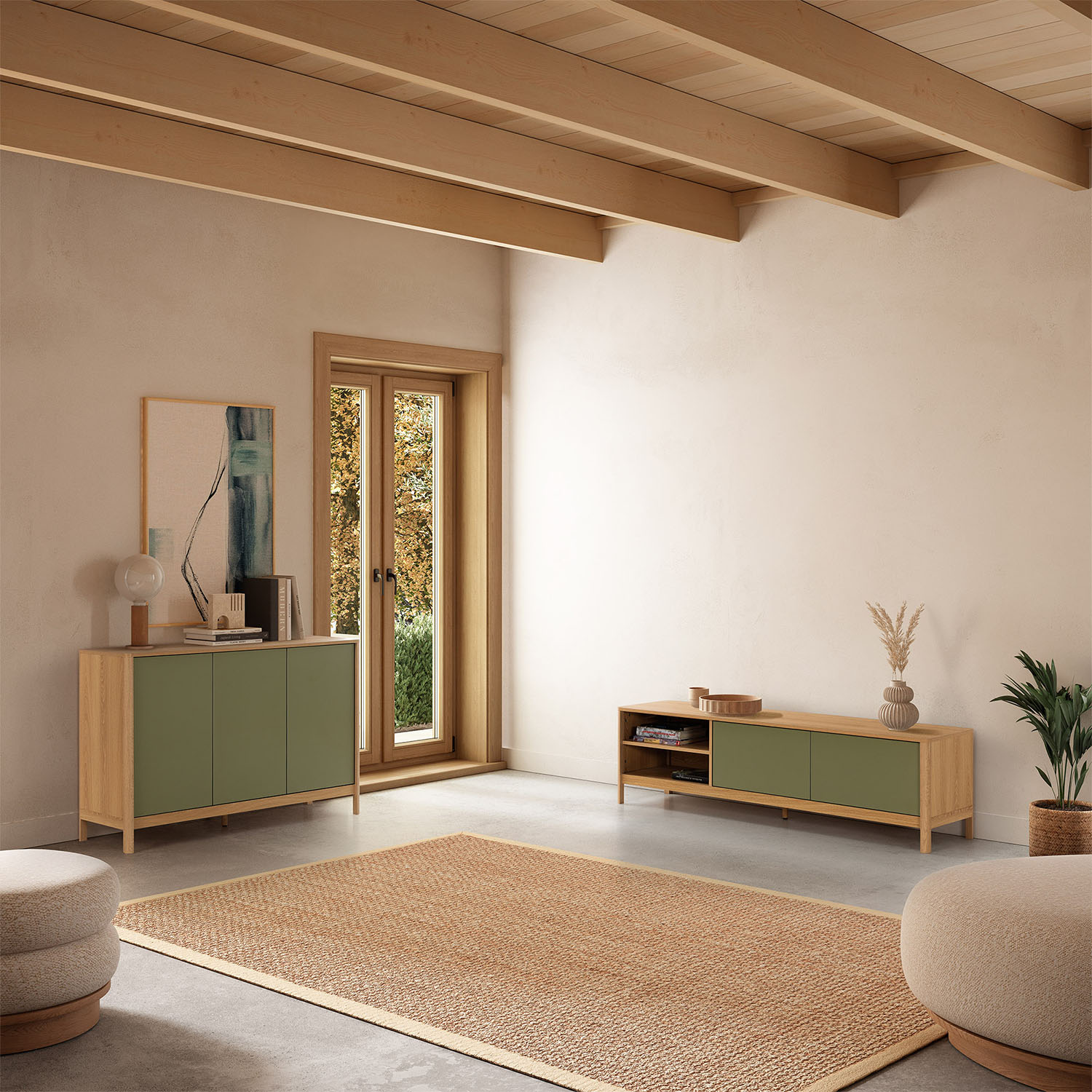 MUEBLE TV NASSAU 2P/2H ROBLE/VERDE